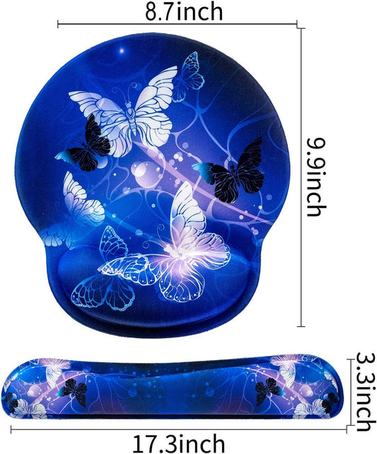 Mouse Pad with Wrist Support and Keyboard Wrist Rest Pad Set,Ergonomic Mouse Pads for Computers Laptop,Non-Slip Comfortable Mousepad W/Raised Memory Foam for Easy Typing & Pain Relief (Arts Butterfly)